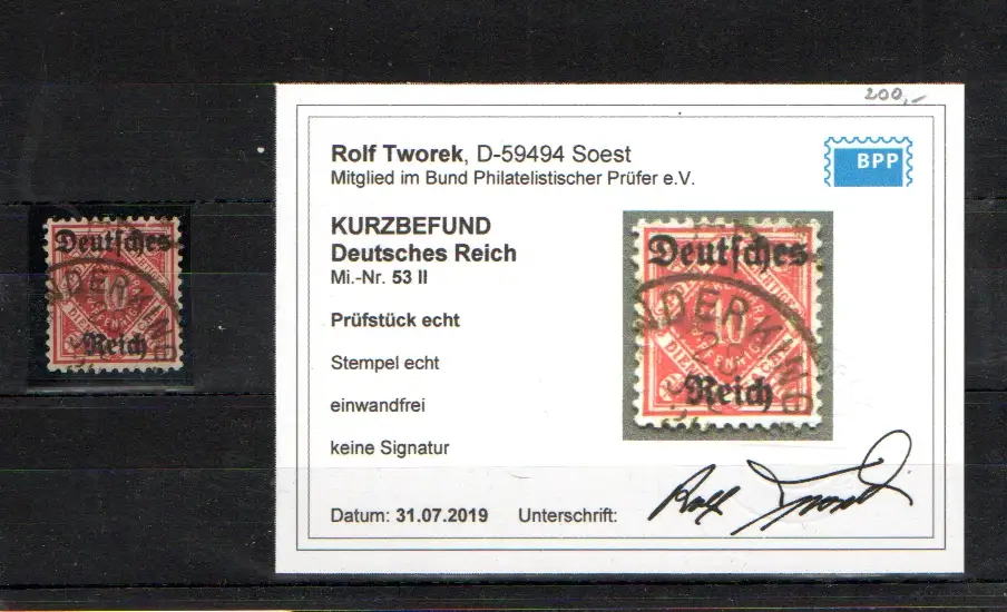 DR, Mi.-Nr. D 53 II, gestempelt, KB. TworekBPP.