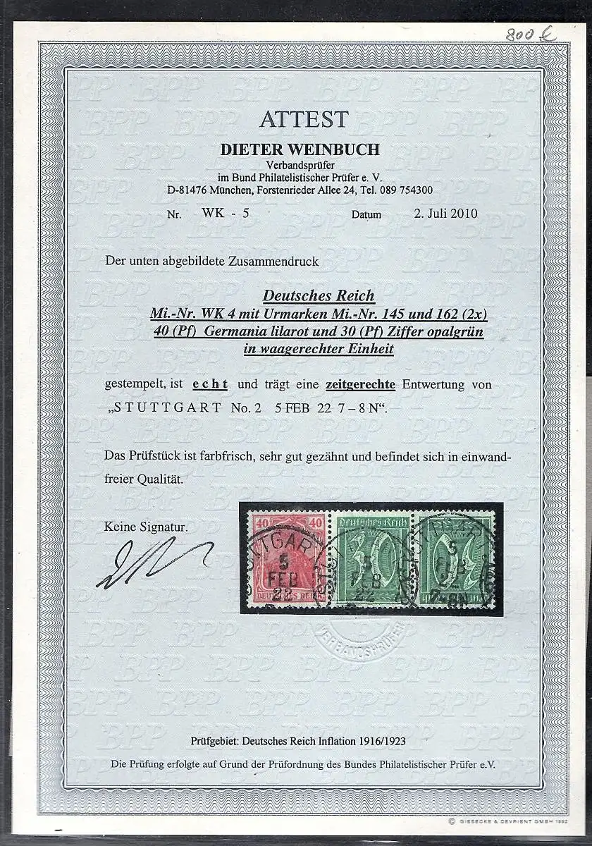 Ein Angebot in Briefmarken Deutsches Reich 1919-1923 - 7.099 weitere Angebote in dieser Kategorie