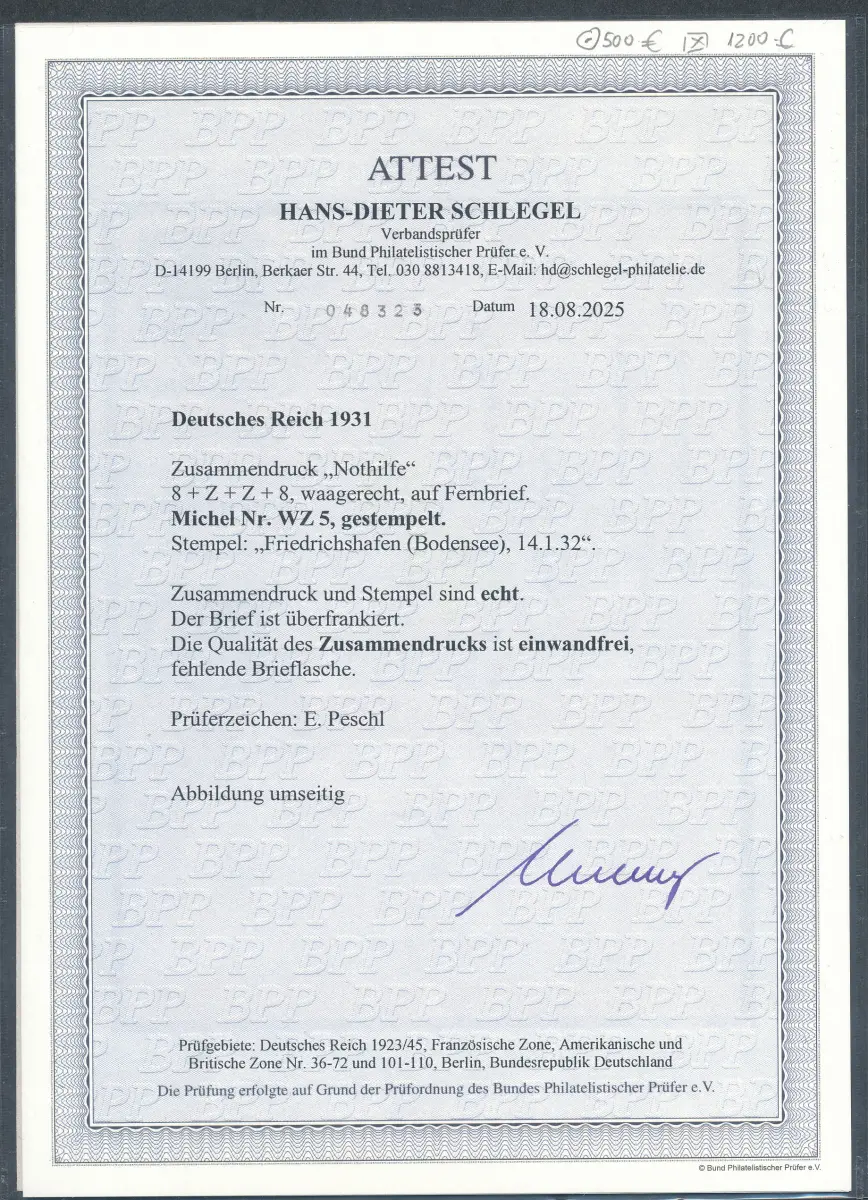 Ein Angebot in Briefmarken Deutsches Reich 1924-1932 - 2.790 weitere Angebote in dieser Kategorie