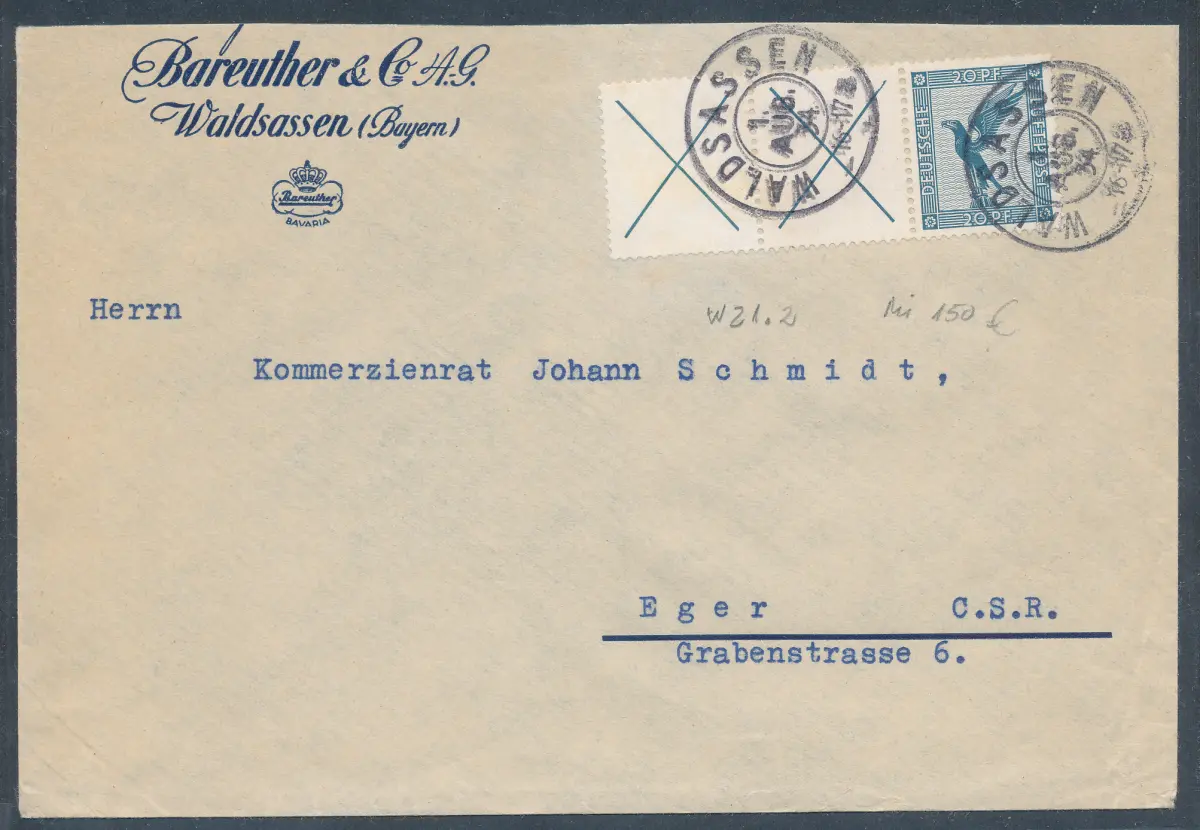 DR. Mi.-Nr. Wz 1.2 auf Fernbrief