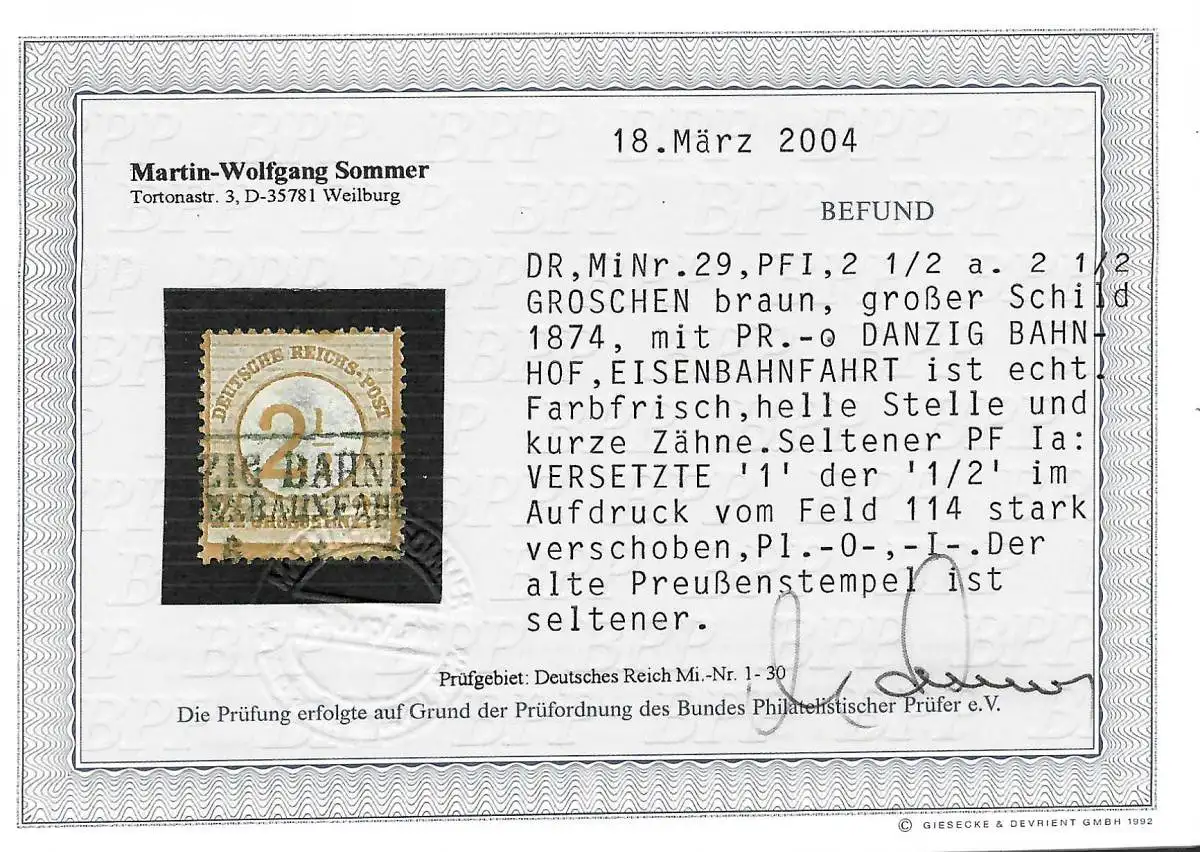 DR: MiNr. 29 PF I, gestempelt, Bahnpost Danzig Bahnhof, BPP Befund