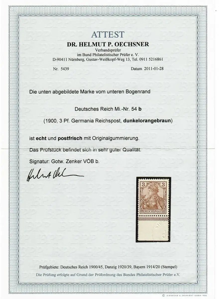 DR MiNr. 54b vom Unterrand, postfrisch, **, BPP Attest