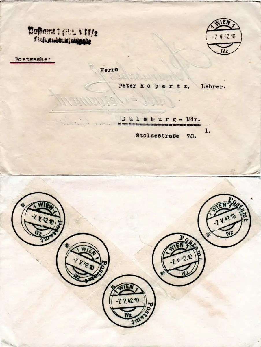 DR Ostmark 1942, portofreier Postsache Brief v. Wien m. rücks. Amtssiegeln
