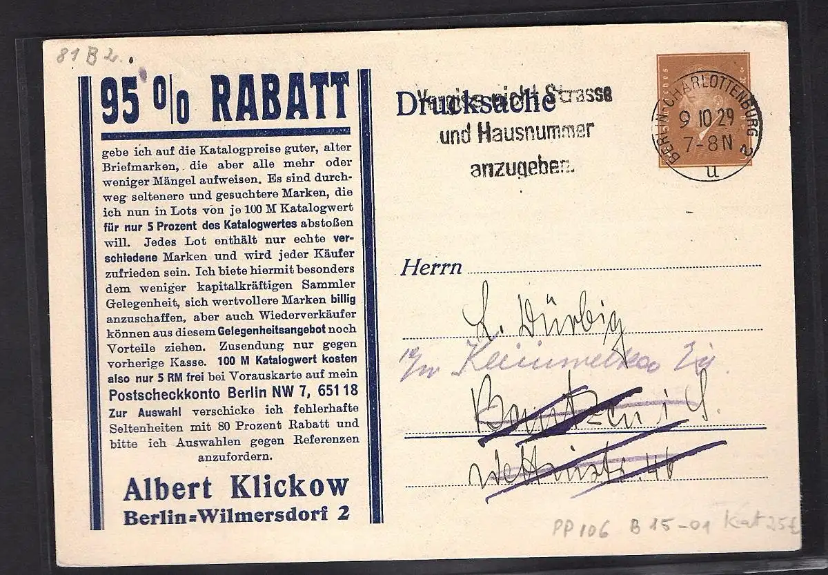 DR., Privatganzsache, Albert Klickow PP106-B15/01 gelaufen