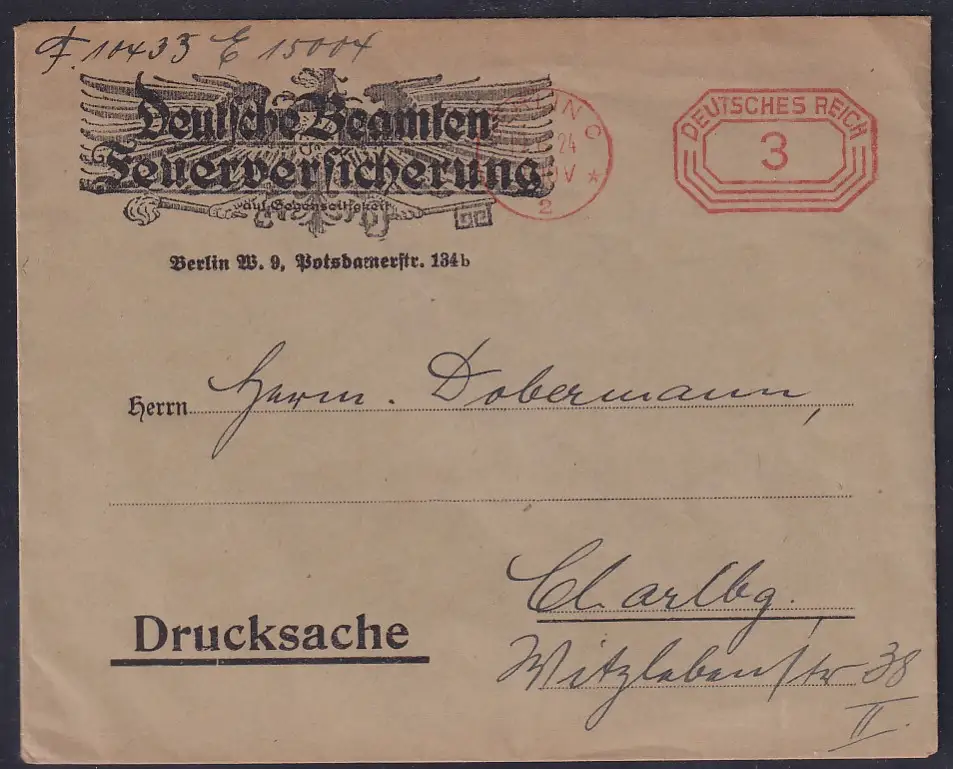 DR. Reklame-Brief, " Deutsche Beamten Feuerversicherung, Berlin