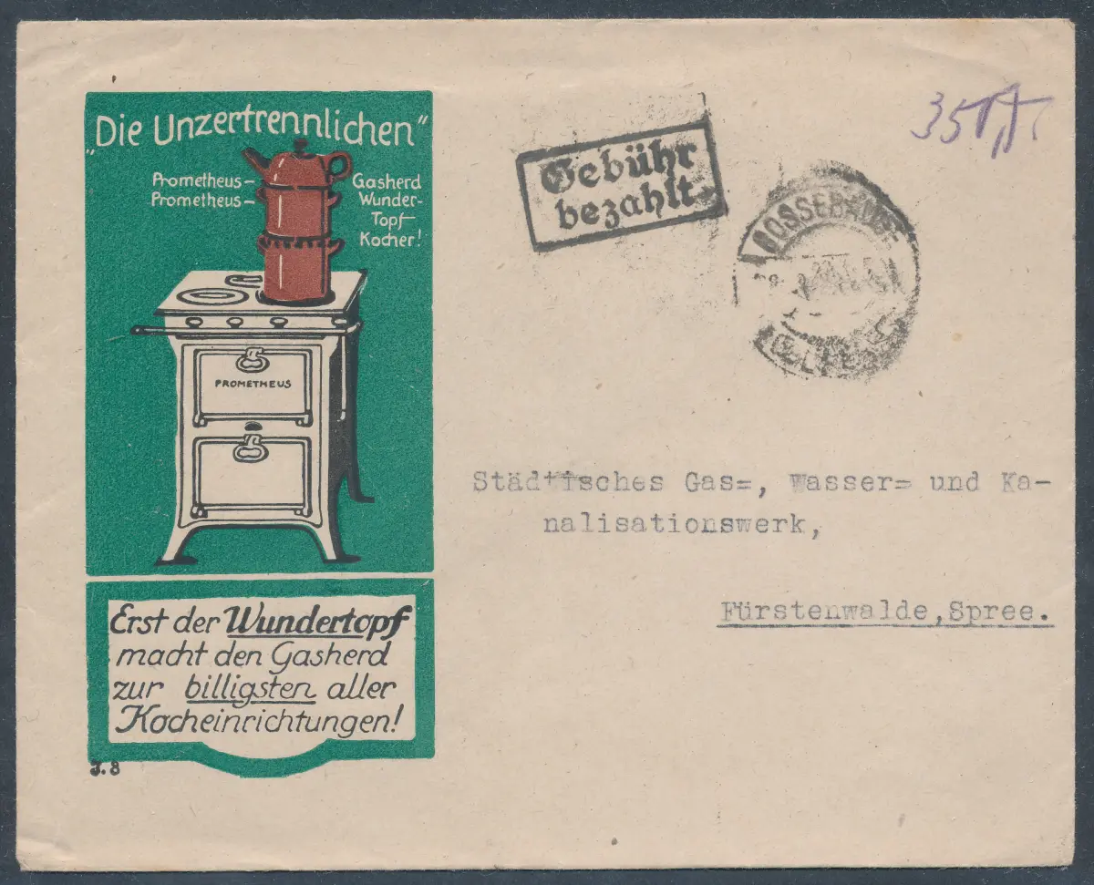 DR. Reklame-Brief Prometheus Wundertopf mit Gebühr bezahlt.