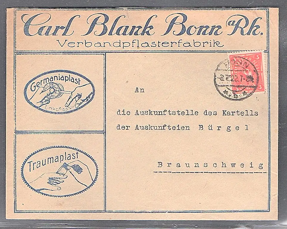 DR. Reklame-Brief, Verbandpflasterfabrik Carl Blank Bonn.