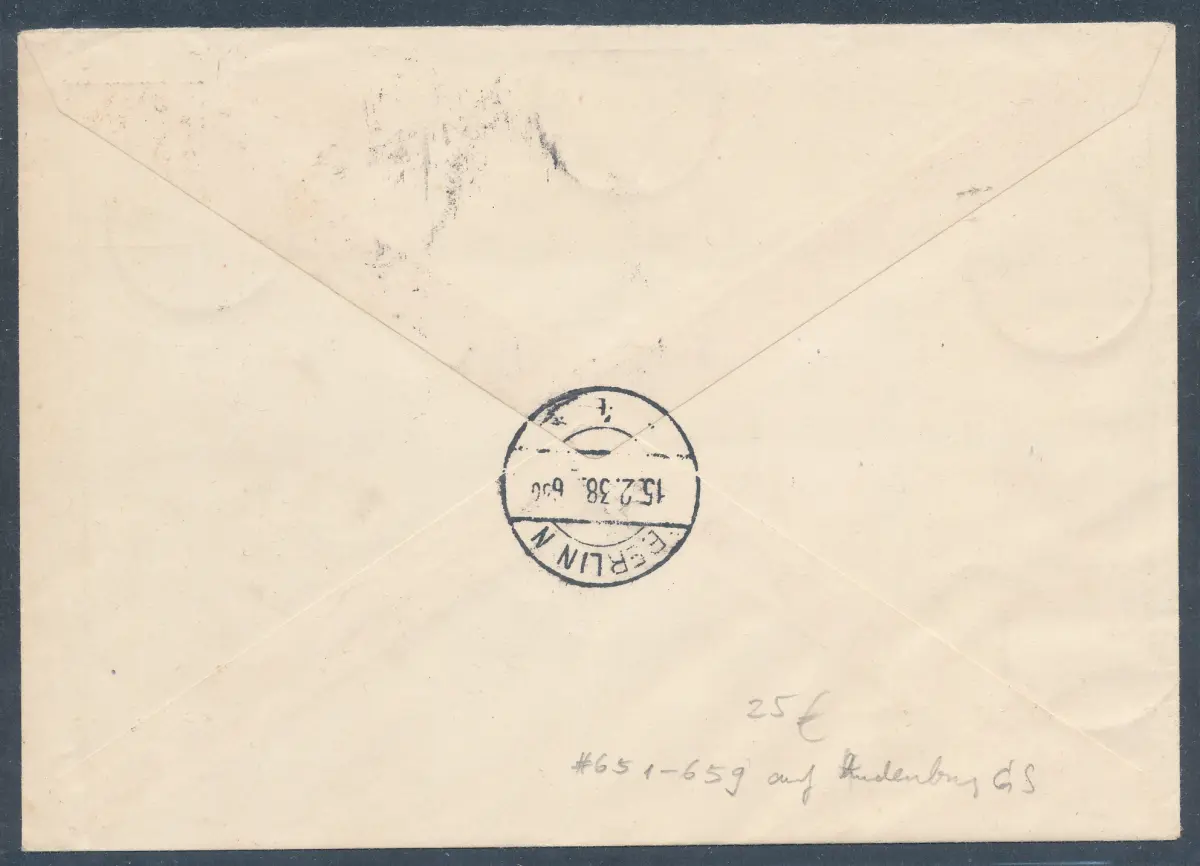 DR. Satzbrief Mi.-Nr. 651 - 659 auf Hindenburg Ganzsache gelaufen.