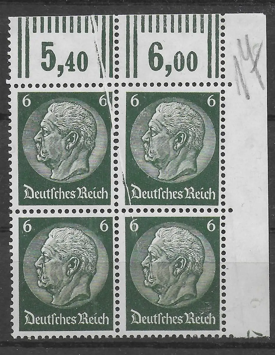 DR: Viererblock Hindenburg **, postfrisch mit Quetschfalte und Abklatsch
