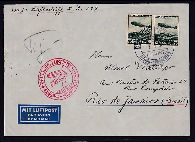 DR., Zeppelin-Brief, Südamerika Fahrt mit MeF. 607 nach Brazil