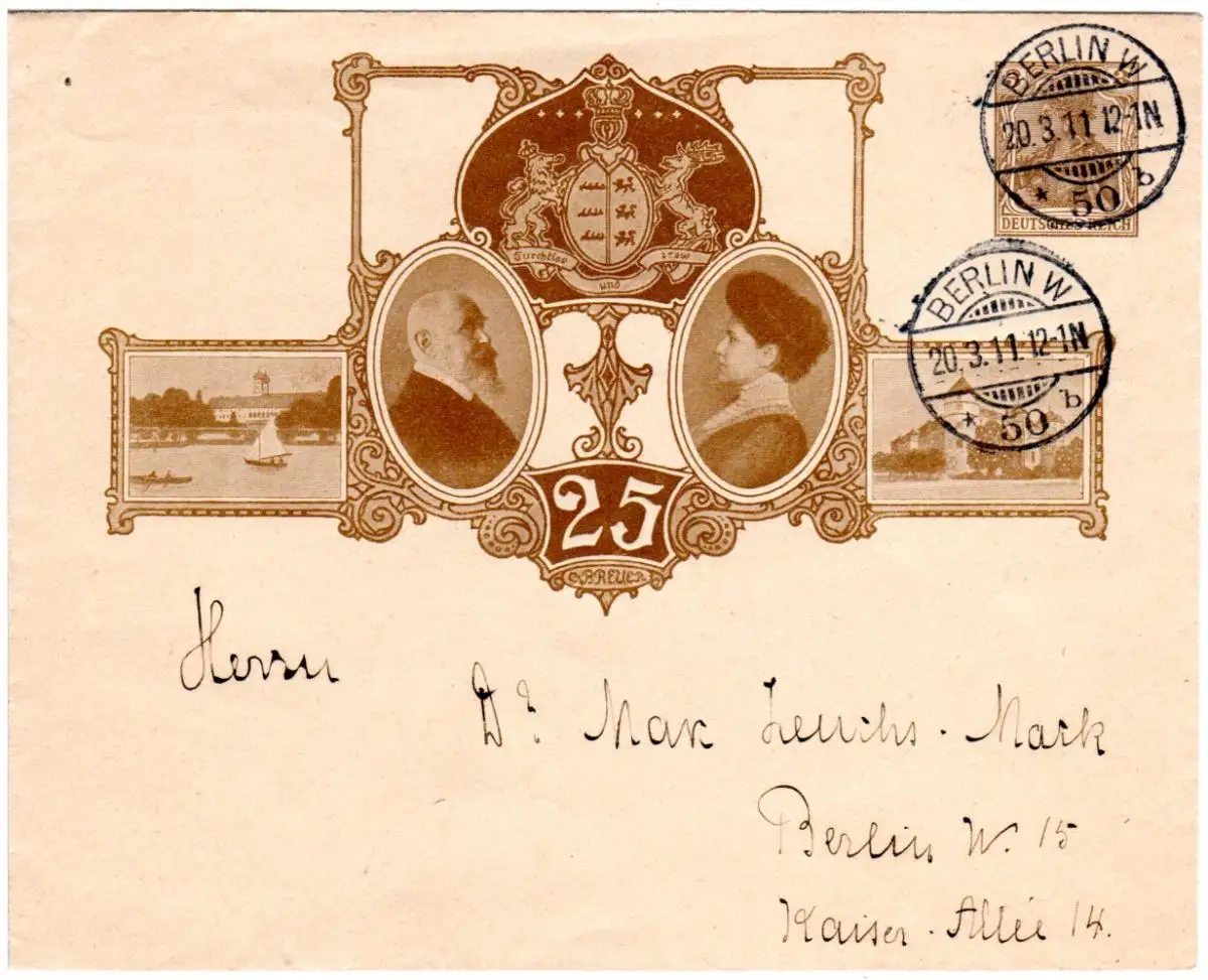DR, als Ortsbrief Berlin gebr. 3 Pf. Privatganze Königspaar Württemberg