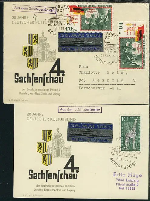 Aus dem Schiffspostkasten + Vignette auf Sonder-PK + Sonder-Umschlag (4. Sachsenschau)