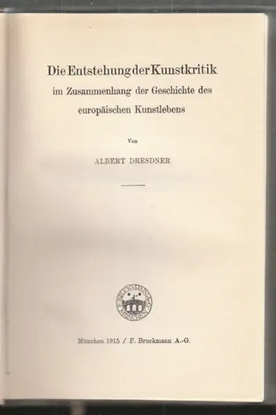Mchn., Bruckmann 1915. 4 Bll., 359 S. OHPgmt. m. Rückensch. - (Die Kunstkritik. Ihre Geschichte und Theorie, 1. Teil)