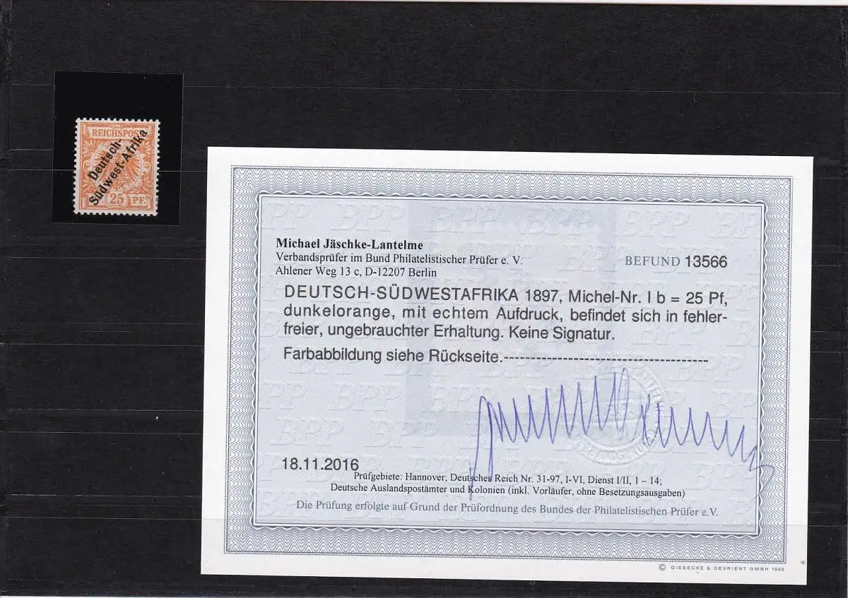 DSWA: MiNr. I b, Falzspur, BPP Befund