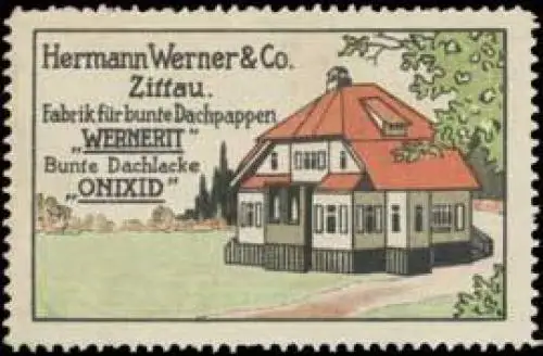 Fabrik für bunte Dachpappen Wernerit, bunte Dachlacke Onixid, Dachdecker, Größe/Zustand: 3x6 , guter Zustand, Original alte Reklamemarke die seinerzeit für die Werbung benutzt wurde
