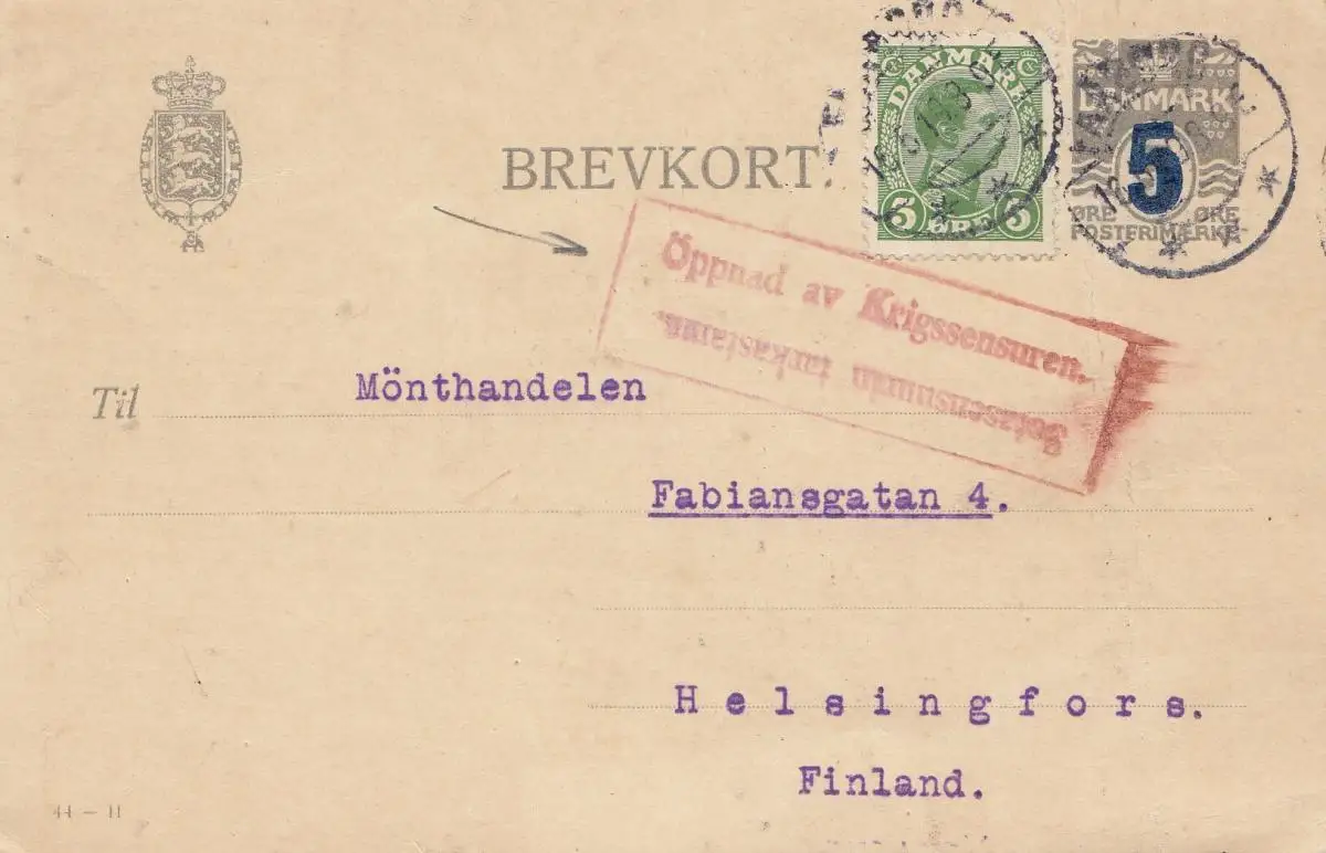 Dänemark: 1919: Ganzsache Faaborg nach Finland - Kriegszensur