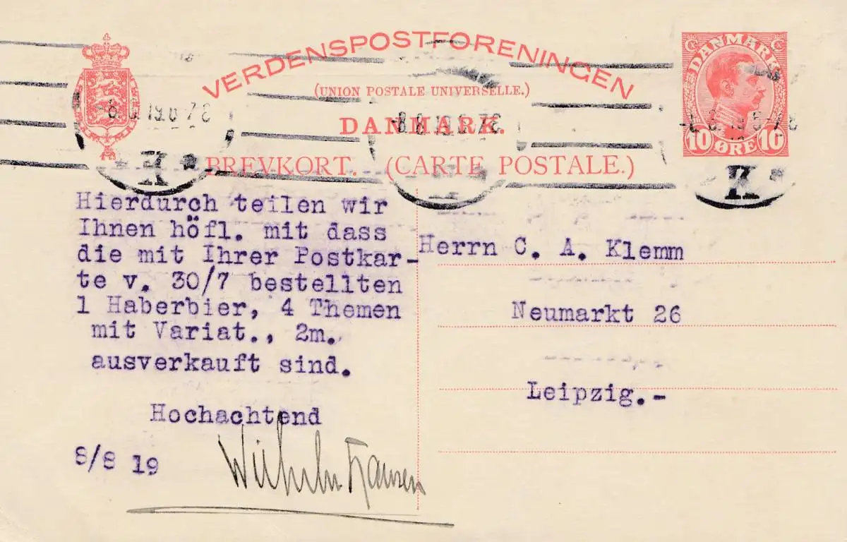 Dänemark: 1919: Ganzsache nach Leipzig