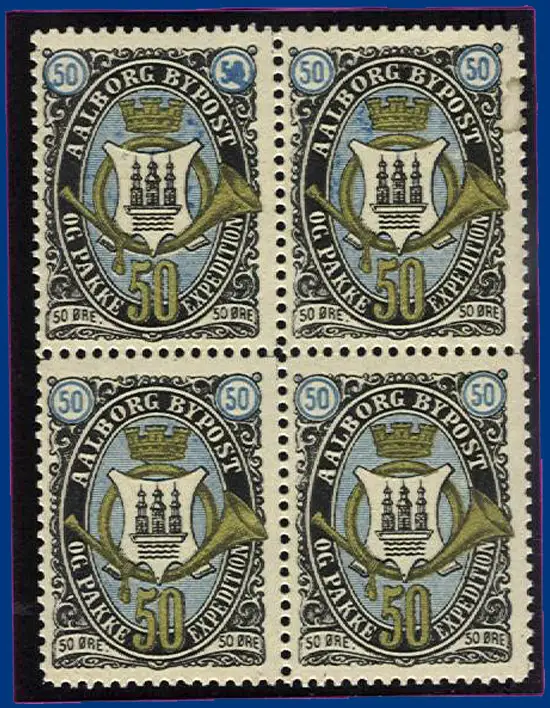 Dänemark Bypost, Aalborg 50 öre, ungebr. 4er-Block! #S661