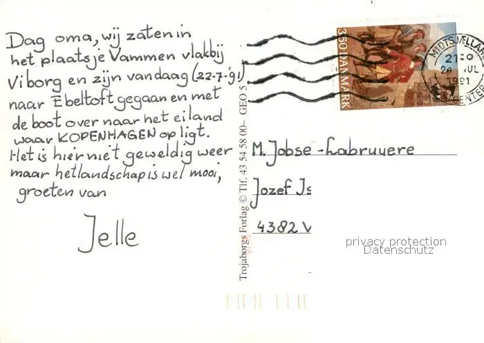 Daenemark Gebietskarte Daenemark postalisch gelaufen 1991 Erhaltung siehe scans [WerneD78] WernPID7