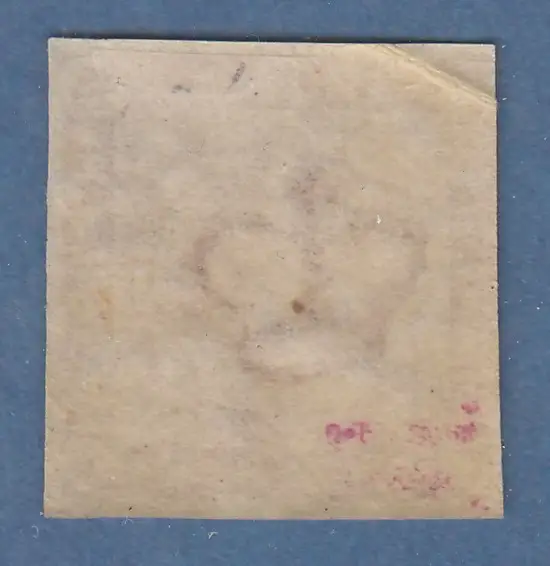 Original-Marke sauber ungestempelt. Unterdruck Wellenlinien erkennbar, Wz Krone. Oben links Eckbug. Links angeschnitten, sonst breitrandig. Nicht dünn. Siehe Scans.