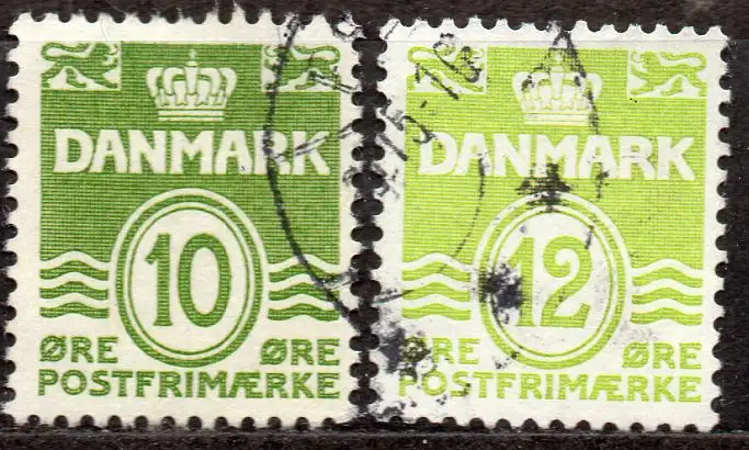 Dänemark, Mi-Nr. 328 x + 332 x gest., Wellenlinien
