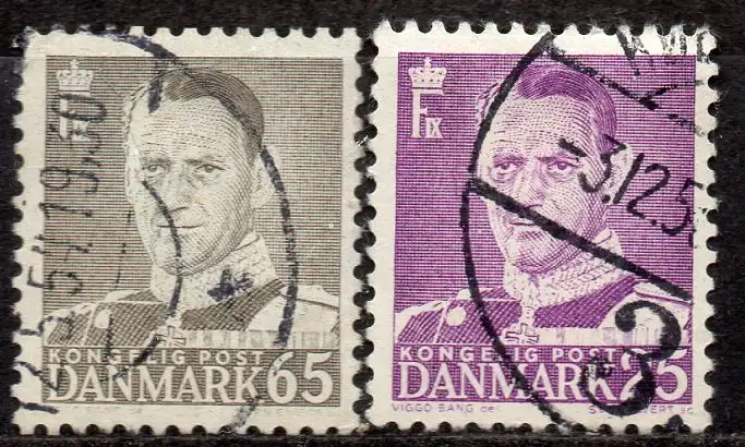 Dänemark, Mi-Nr. 349 + 355 gest., König Frederik IX.