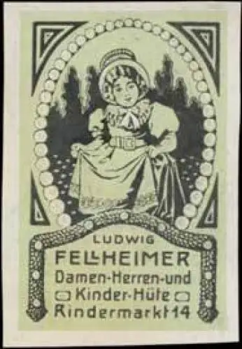 Damen-, Herren- und Kinder-Hüte, Größe/Zustand: 6x4 , guter Zustand, Original alte Reklamemarke die seinerzeit für die Werbung benutzt wurde
