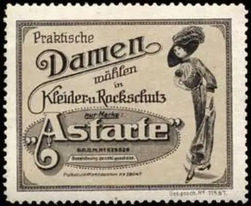Praktische Damen wählen in Kleider und Rockschutz Astarte, Größe/Zustand: 4x5 , guter Zustand, Original alte Reklamemarke die seinerzeit für die Werbung benutzt wurde