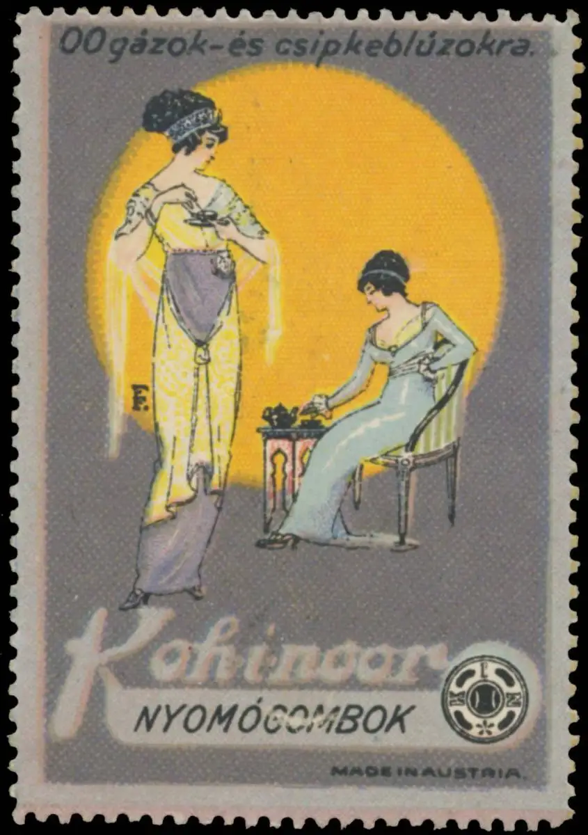 Nyomogombok, Koh-i-noor Druckknöpfe in ungarischer Sprache, Größe/Zustand: 6x4 , leicht beschädigt, Original alte Reklamemarke die seinerzeit für die Werbung benutzt wurde