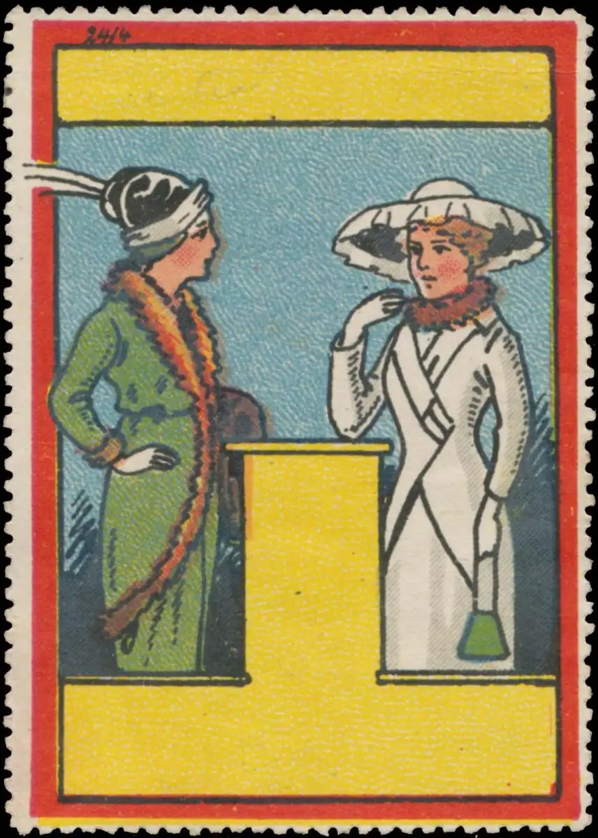 Damen im Gespräch, Größe/Zustand: 7x5 , guter Zustand, Original alte Reklamemarke die seinerzeit für die Werbung benutzt wurde