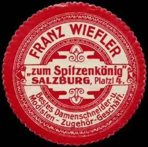 Bestes Damenschneider- und Modisten - Zugehör - Geschäft. Rot, weiß , Größe/Zustand: 6 , guter Zustand, Original Verschluss-Siegelmarke aus Papier welche früher von Behörden, Firmen etc. zum Versiegeln der Briefe benutzt wurden