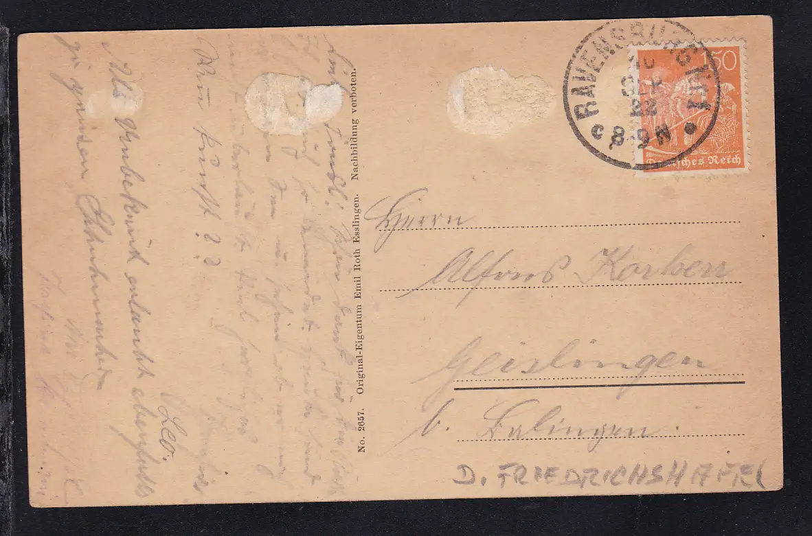 Dampfer "Friedrichshafen", Karte rs Leimrest