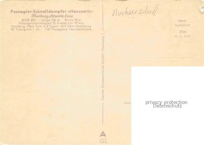 Dampfer Oceanliner Hanseatic Hamburg Atlantic Linie postalisch nicht gelaufen Erhaltung siehe scans [IrynaD87]