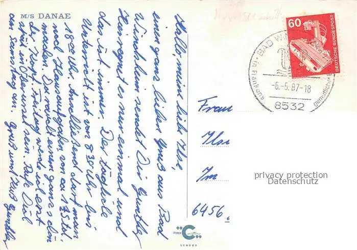 alte Postkarte Dampfer Oceanliner MS Danae postalisch gelaufen Erhaltung siehe scans [IrynaD87]