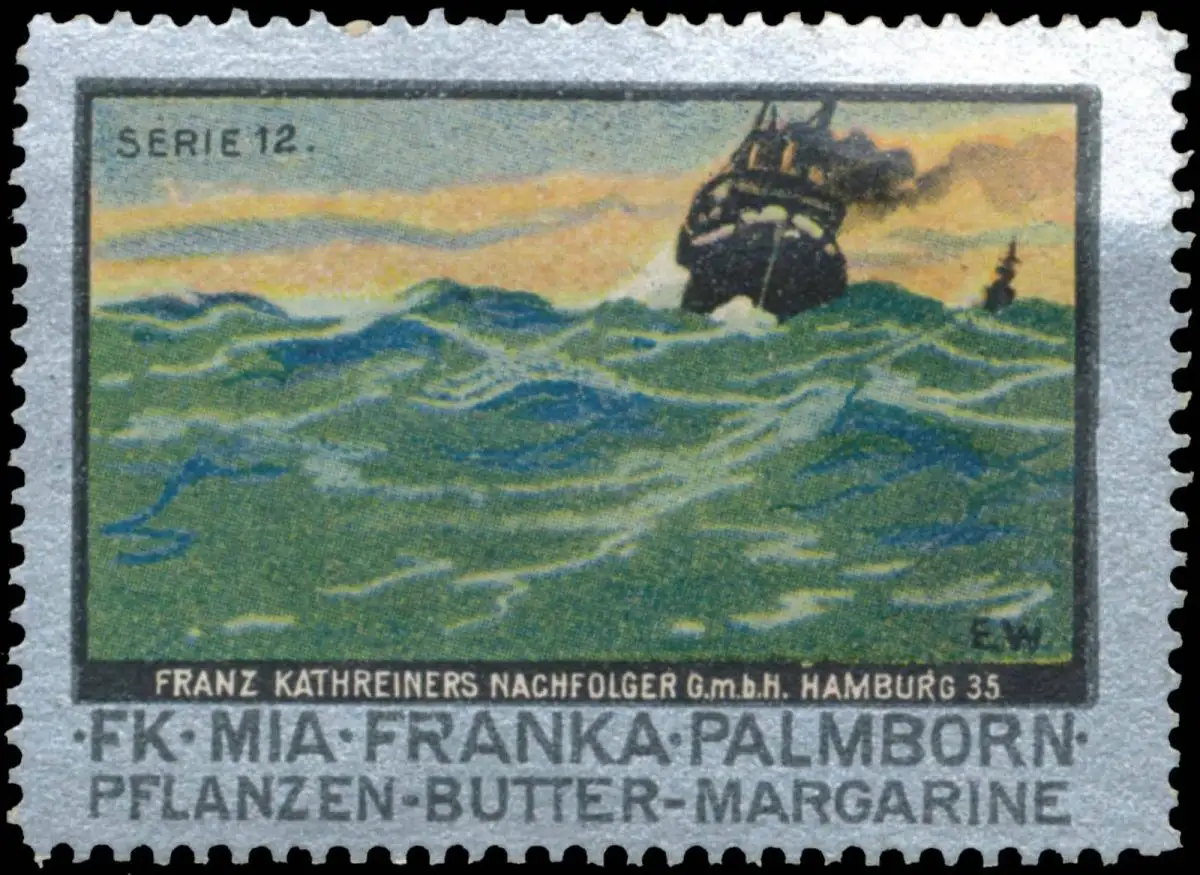 FK-MIA-Franka Palmborn Pflanzenbutter-Margarine, Serie 12, Schiffe, Meer, Größe/Zustand: 4x5 , guter Zustand, Original alte Reklamemarke die seinerzeit für die Werbung benutzt wurde