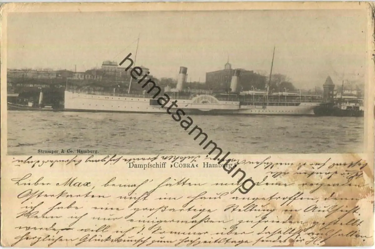 Dampfschiff Cobra Hamburg - Strumper & Co. Hamburg - Vorderseite fleckig - Ecken bestossen (G8769) gel. 1900