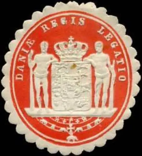 Konsulat von Dänemark, rot, weiß, geprägt, Größe/Zustand: 4x3 , fleckig, Original Verschluss-Siegelmarke aus Papier welche früher von Behörden, Firmen etc. zum Versiegeln der Briefe benutzt wurden