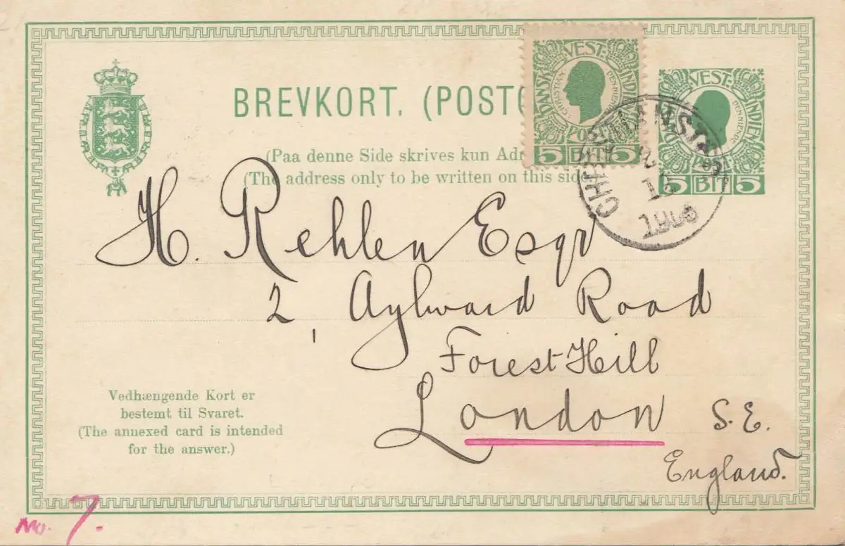 Dansk-Vestindien: Christianstad 1905 postcard to London