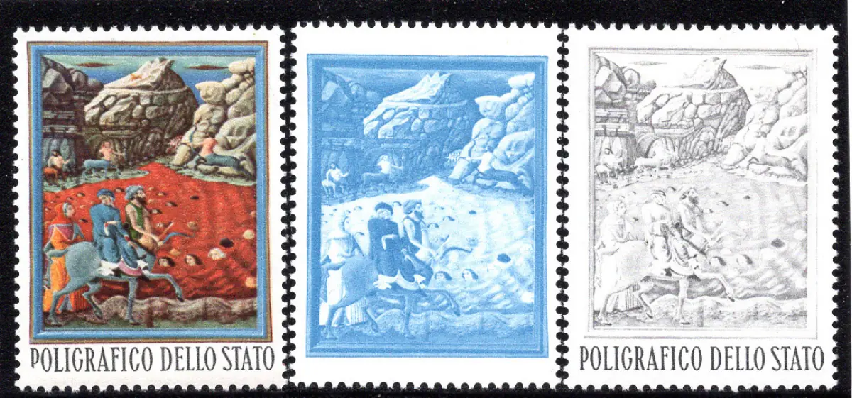 Dante - Serie von fünf Sorten Farbprüfungen Vollgummi - MHN - - Dante - Serie von fünf vom Polygraph vorbereiteten Farbprüfungen zum Testen der neuen Goebel 4-Farben-Rotationsmaschinen (Kat. Unified Nr. 13 + a, b, c, d) - Selten zusammen - Kat. euro 970 Cod. 673/14
