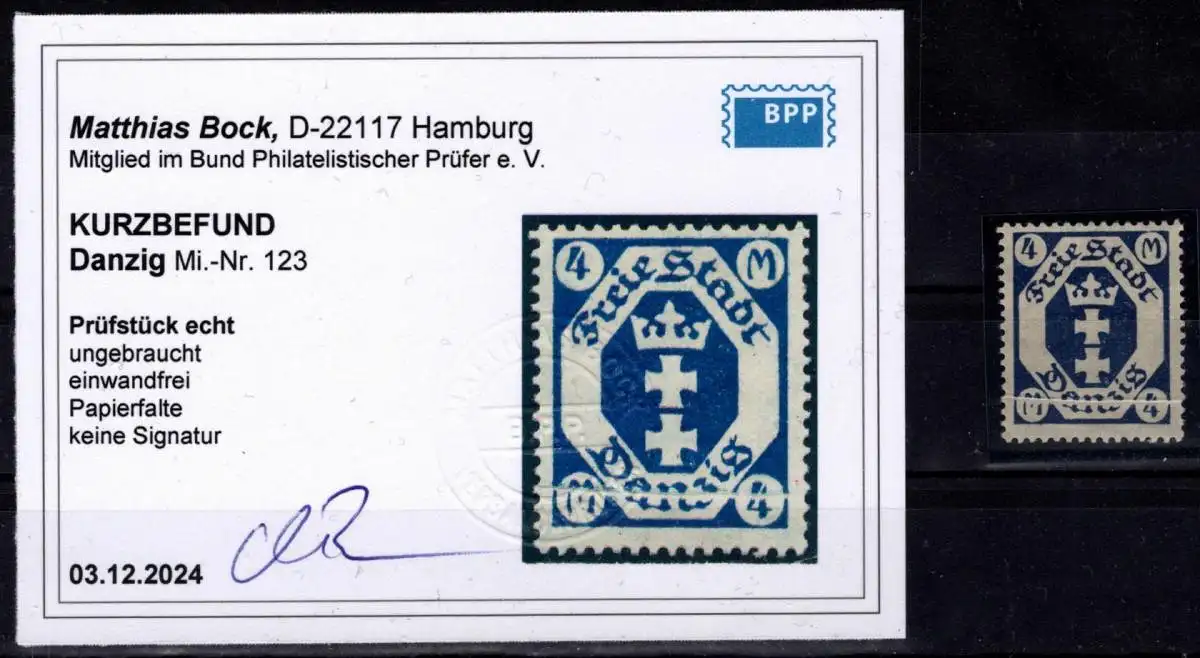 Danzig 123 mit Falz Kurzbefund Bock BPP, mit Papierfalte #OF963
