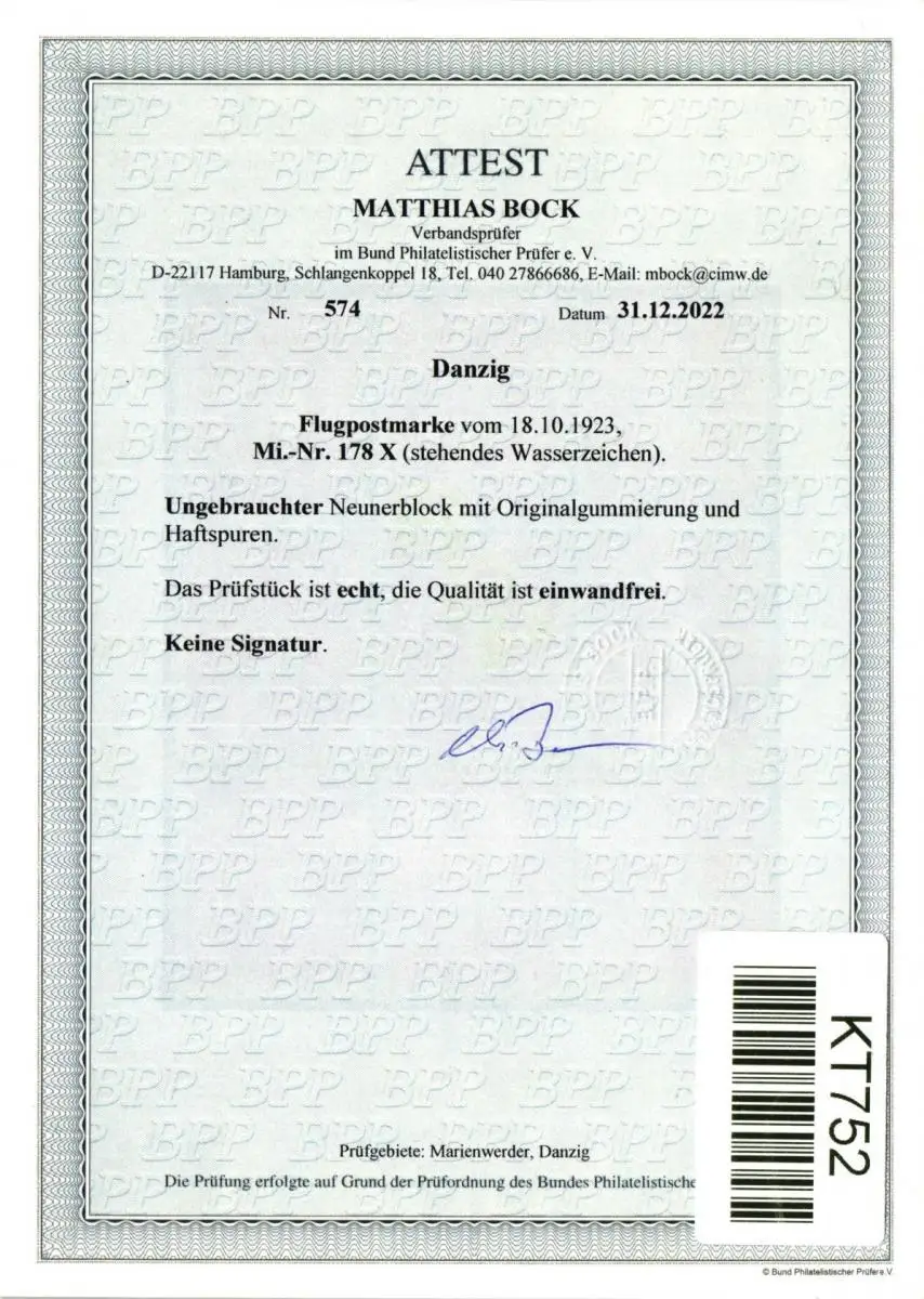 Danzig 178 X mit Falz 9er Block, Attest Bock BPP #KT752