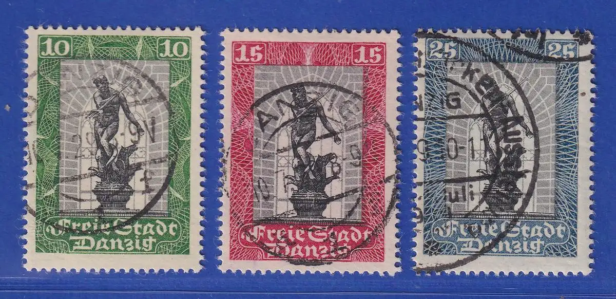 Danzig 1929 Neptunbrunnen Mi.-Nr. 217-219 gestempelt meist gpr. GRUBER BPP