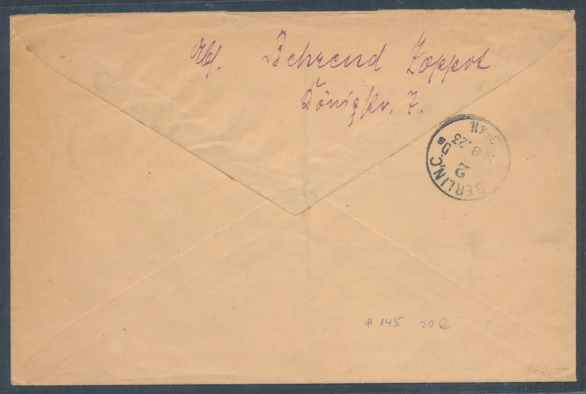 Danzig, Fernbrief mit Me.F. Mi.-Nr. 145 mit Ak.-St.