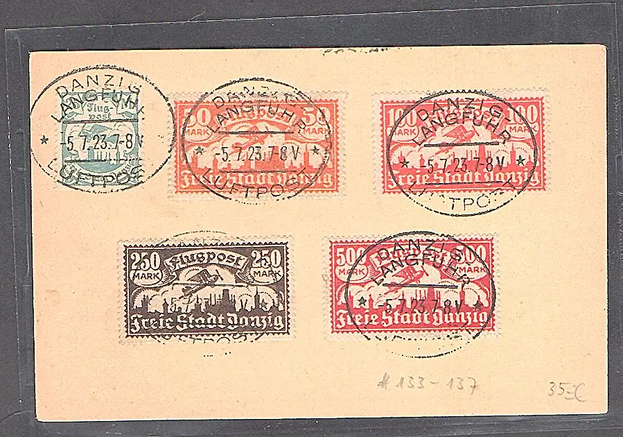Danzig, Fernkarte mit Mi.-Nr. 133-137