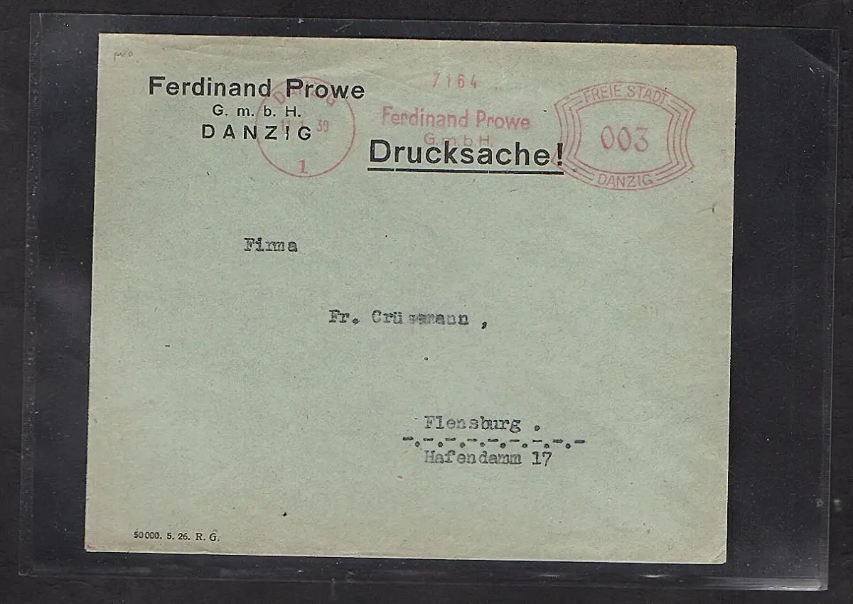 Danzig Firmen-Fern-Drucksache mit Freistempel