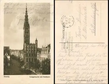 Danzig, Langemarkt mit Rathaus, o 15.06.1929 (MArke ab)