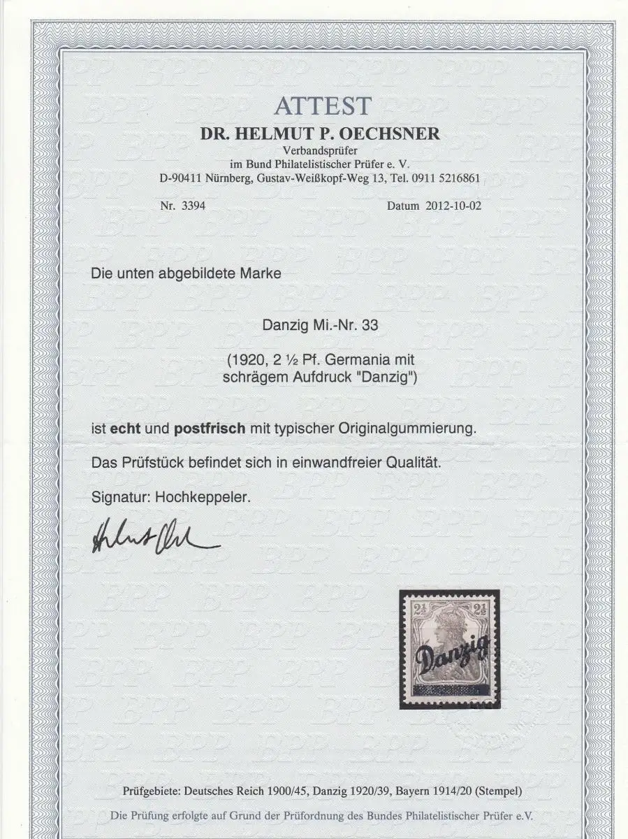 Danzig: MiNr. 33, postfrisch, **, BPP Attest