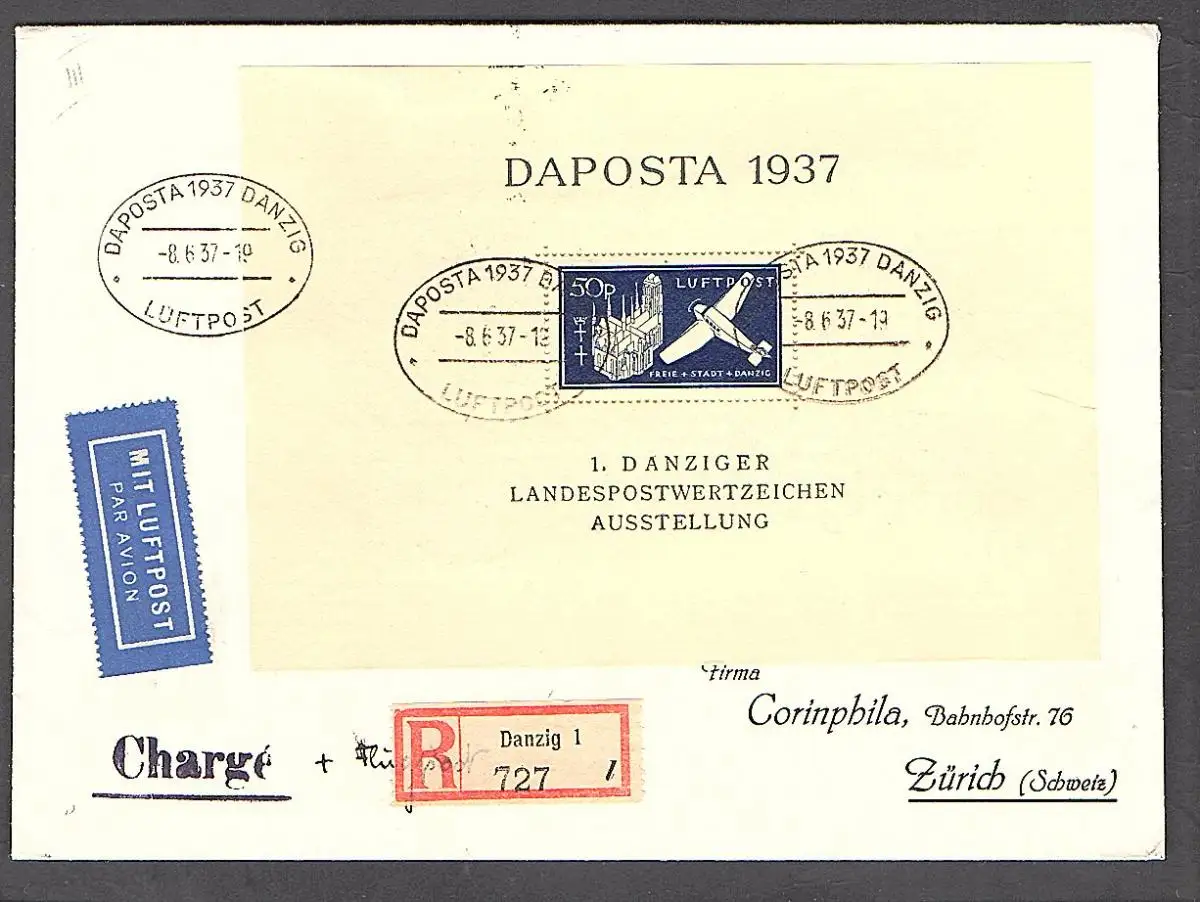 Danzig, R-Ausland-Luftpost-Brief mit MiF, Mi.-Nr. Block 2a, sign. gruberBPP.
