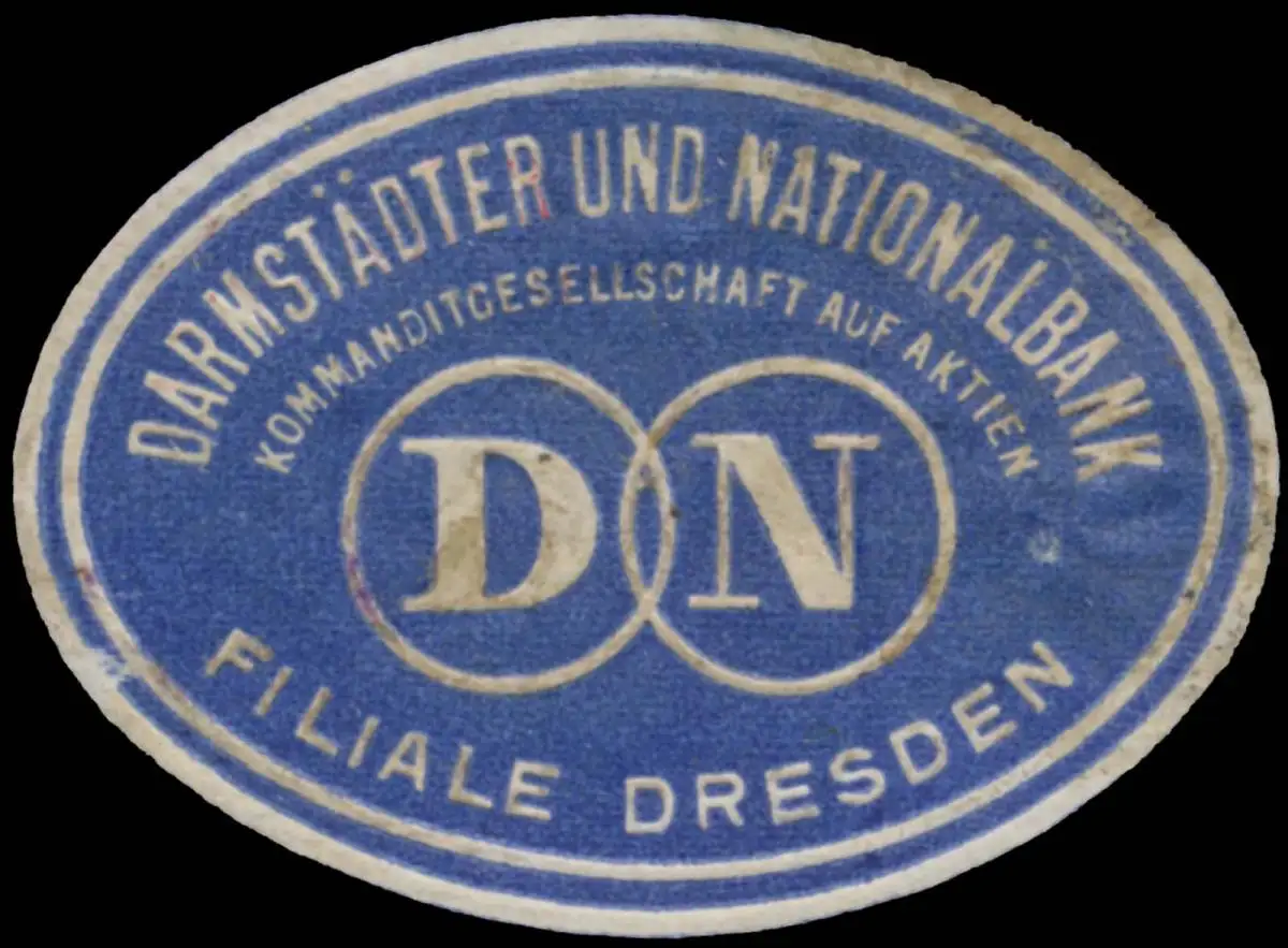 Darmstadt, Bank, Filiale Dresden, Größe/Zustand: 3x5 , beschädigt, Original alte Reklamemarke die seinerzeit für die Werbung benutzt wurde