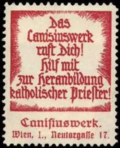 Hilf mit zur Heranbildung katholischer Priester!, Größe/Zustand: 4x3 , guter Zustand, Original alte Reklamemarke die seinerzeit für die Werbung benutzt wurde